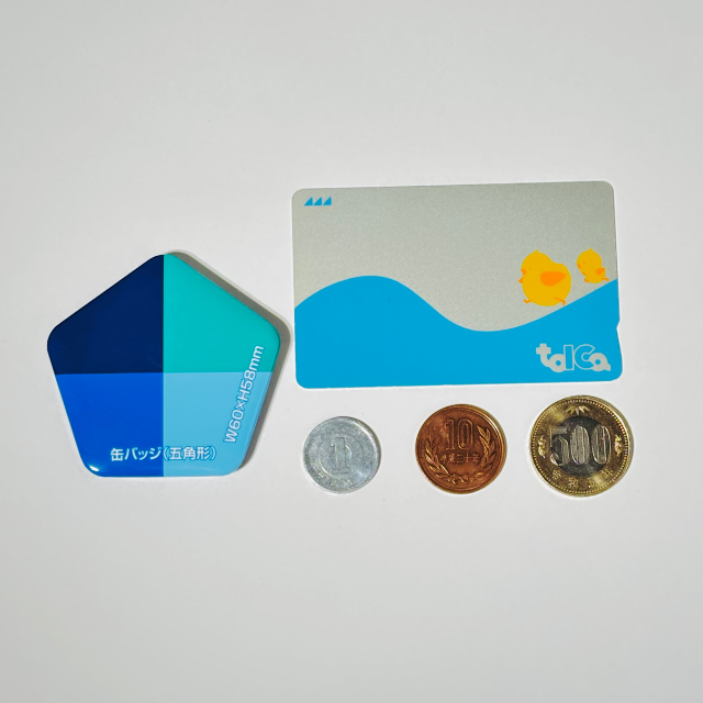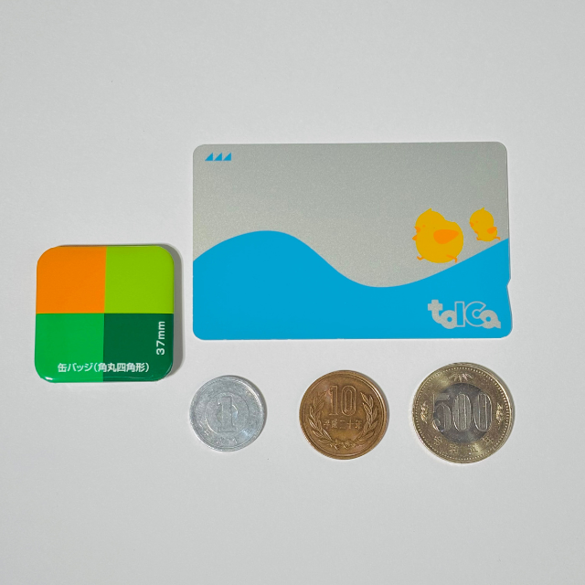 今回は1円玉・10円玉・500円玉・ICカードと缶バッジのサイズを比較してみました!