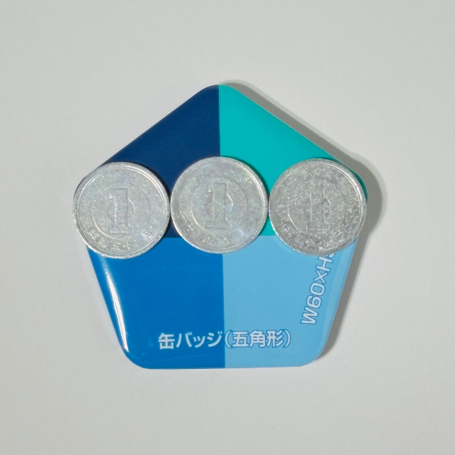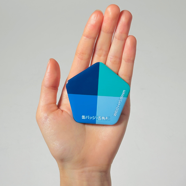 五角形缶バッジのサイズ感|60×58mmでちょうどてのひらサイズ