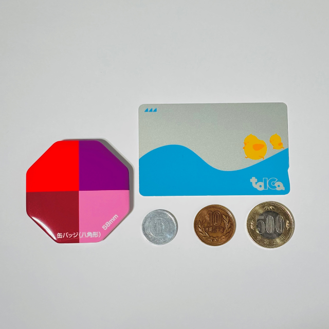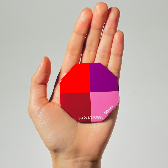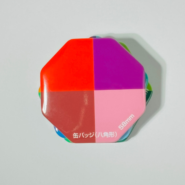 八角形缶バッジのサイズ感|58×58mmで珍しい形
