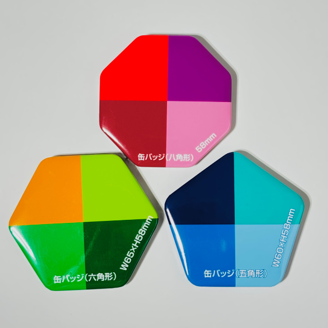 皆さんの用途に合わせて多角形缶バッジをお楽しみください✨