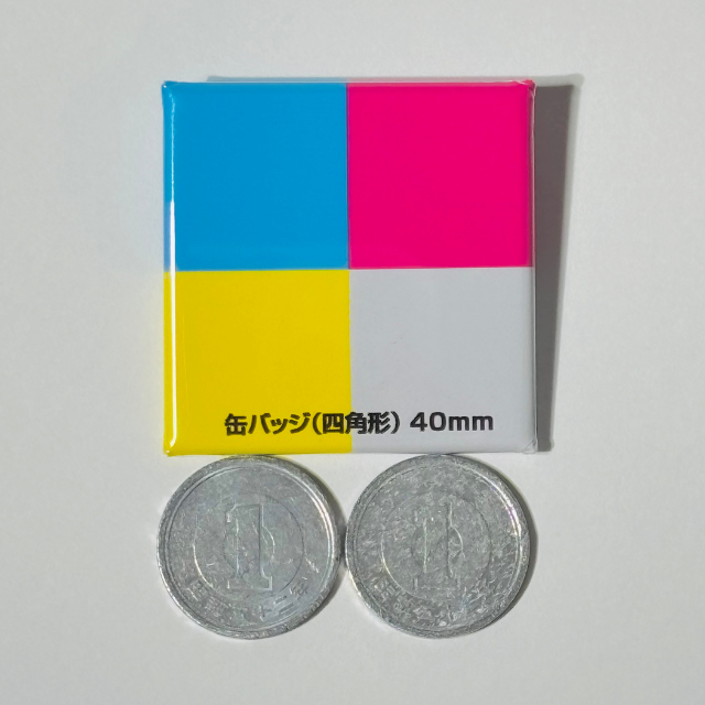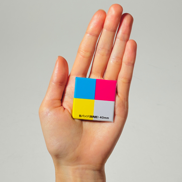 四角形缶バッジのサイズ感|40×40mmで初めてでも使いやすい