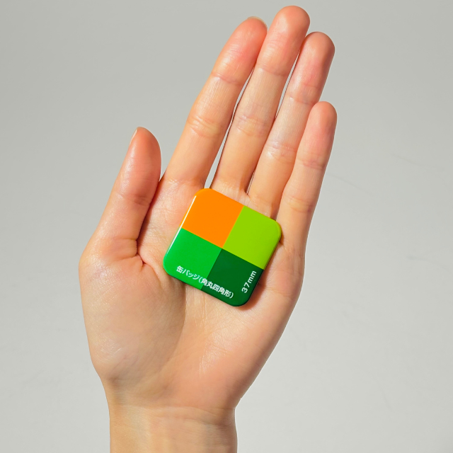 角丸四角缶バッジのサイズ感|37×37mmコロンとかわいい