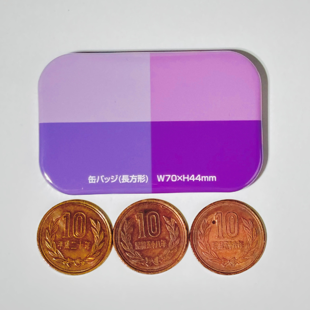 長方形缶バッジのサイズ感|70×44mmで広々とデザインできる