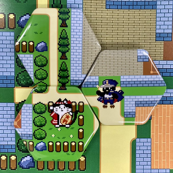 六角形缶バッジはキャラクターグッズとの相性が良く、