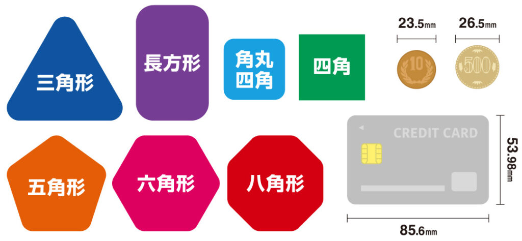 そこで今回は、多角形缶バッジ7種類のサイズ感を徹底比較!