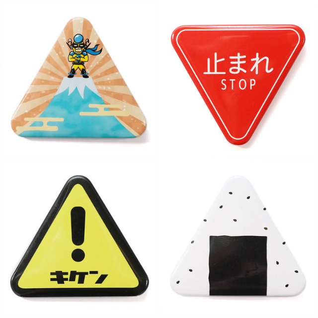 おにぎりやピラミッドにぴったり!三角形缶バッジはW70mm×H63mmで