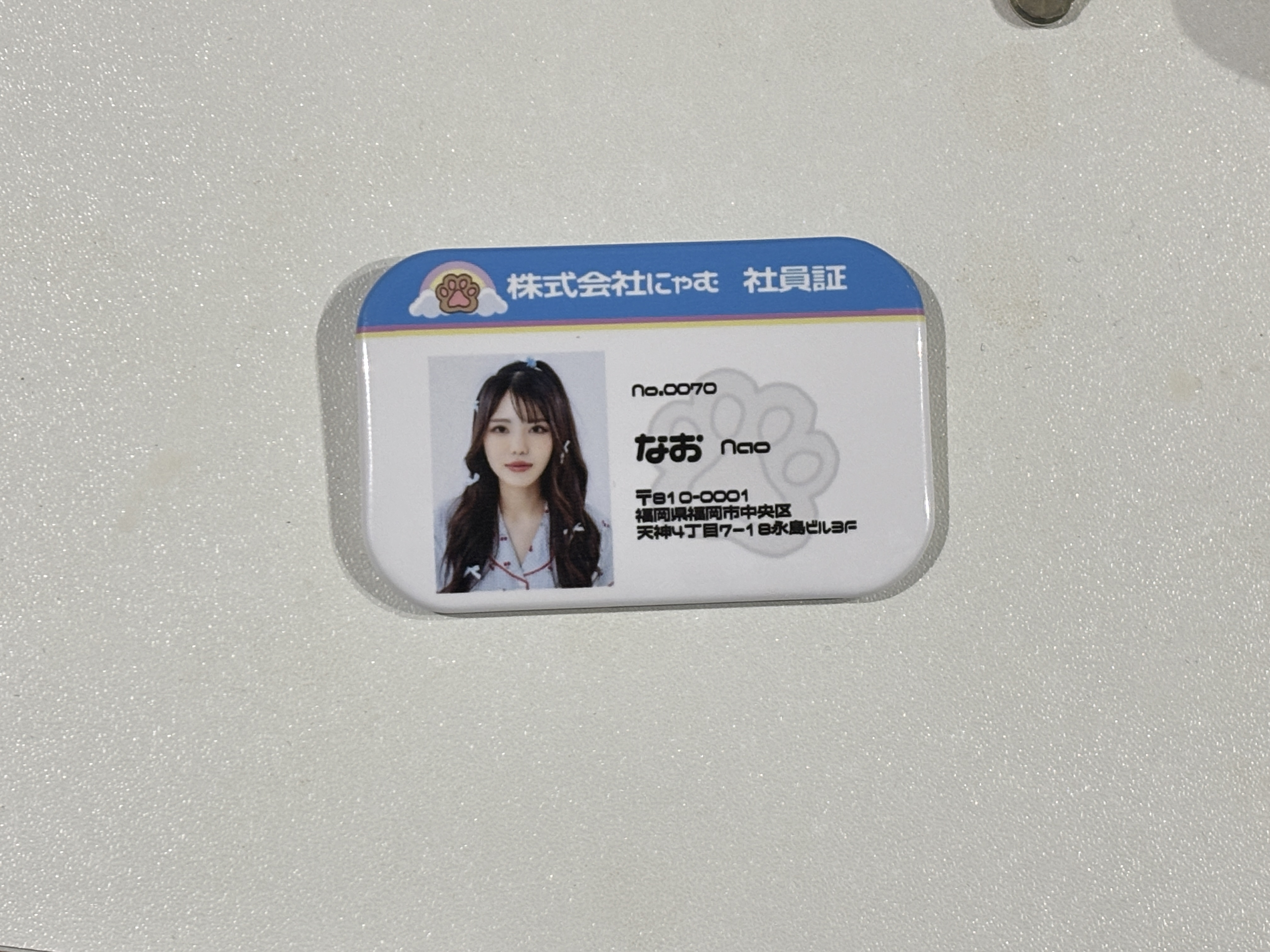 長方形缶バッジは70mm×44mm。
